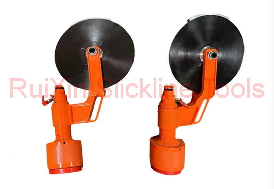 Hydraulic Stuffing Box Wireline Pressure Control is a surface pressure control equipment using on slickline operation to seal off the wire, and the sealing of the wire according the rubber seal packing. The BOP plunger of the blowout system is usedfor the sealing of the downhole pressure after the wire break.The seal packing are both available with manualand hydraulic control methods.Hydraulic Stuffing Box Wireline Pressure Control is used to seal off around moving or stationary solid wireline while performing wireline work under well pressure. Connected to the top section of the Lubricators, to allow the wireline to be guided in its travel;internal packings which seal off pressure and provide lubricant to the wireline; packing nut to control the hydrauliccompression of the packing around wireline to minimize leakage; and a blow out plug at the lower section to providea seal should the wireline break and be blown out of the packing Hydraulic Stuffing Box Wireline Pressure Control consist of Sheave staff, body and control hydraulic cylinder. WP.3000psi ,5000psi.10000psi,15000psi.